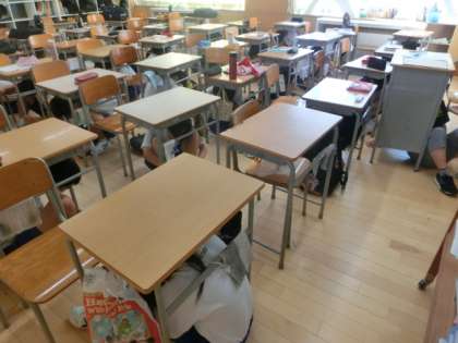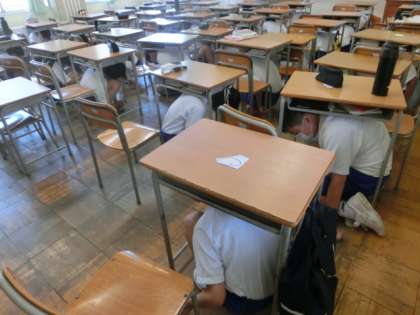 速星タイムに県民一斉防災訓練「シェイクアウトとやま」を実施しました。中段は1年、下段は2年の様子です。