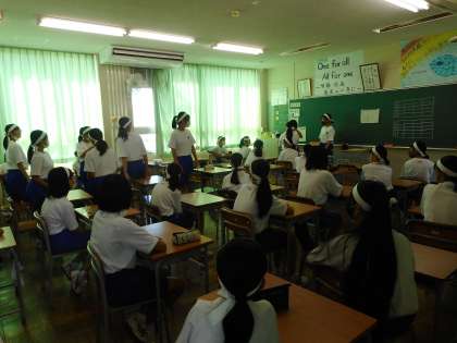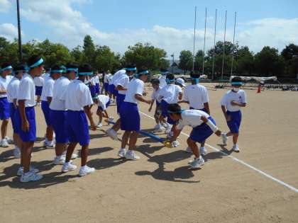 3限に、実際にグラウンドで練習をしました。グラウンドはとても暑かったですが、みな笑顔で練習に励んでいました。