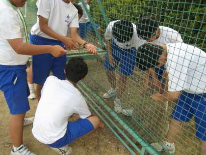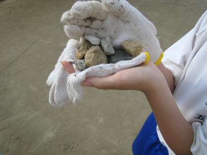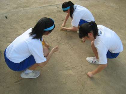 放課後、ボランティア委員会・環境委員会主催の「思いやり清掃」を行いました。各学年の委員や有志、団リーダー等、計100名を超える参加者が集まり、体育大会に向けてスポーツプラザの草むしりや小石拾いを行いました。(上段・中段:草むしりの様子、下段:小石拾いの様子)