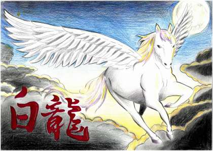 白龍団デコレーションの一番の見所は、色です。モチーフとなったペガサスは、優雅で気品のあるペガサスを演出するために、白だけではなく、たてがみにピンクや黄緑などのパステルカラーを取り入れました。背景は、全体的にグラデーションやぼかしで濃淡をつけ、よりペガサスが強調できるように工夫しました。