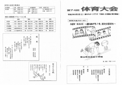 体育大会のプログラムをアップしました。表紙の絵は渡辺さん(14H)が、スローガンは全校生徒からアンケートをとって実行委員が作成しました。大きい画像は、下のタイトルをクリックしてください。