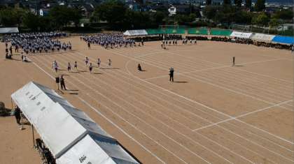 第74回体育大会 開会式、1年100m走のドローン動画を「生徒・保護者ページ」に掲載しました。