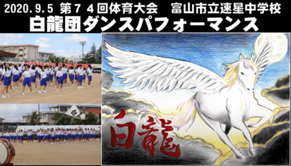 第74回体育大会 白龍団ダンスパフォーマンスの編集動画を「生徒・保護者ページ」に掲載しました。