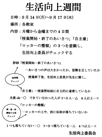 生活向上委員会 生活向上週間(予告)