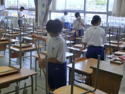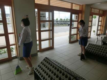 「普段の清掃への意識を高め、よりよい環境をつくる」という活動目的を達成すべく、全校生徒が清掃に取り組みました。