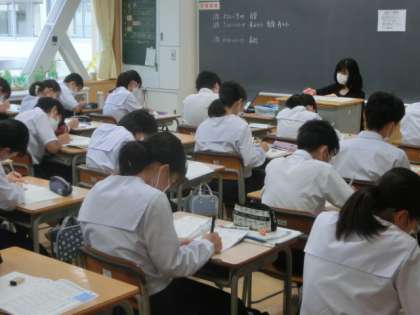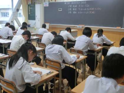 3年生は、昨日に引き続いて学力確認テストを受けました(下段)。