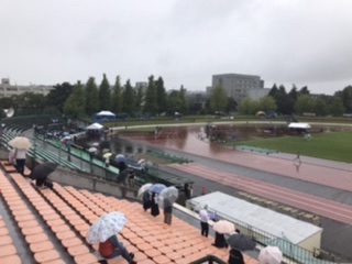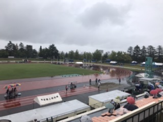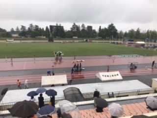 共通男子1500mまで終わりました。本校の生徒は大健闘中です。