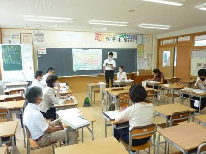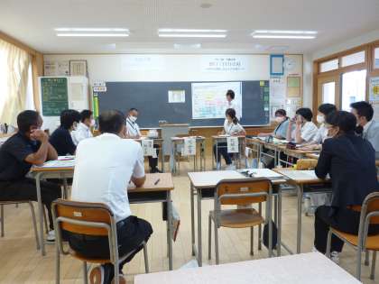 本日、学校訪問研修会(6つの研究授業と研究協議会)が行われました。この研修会は、教員の教科の指導力等を高めるために行われており、来年度の新学習指導要領の全面実施に向けて、指導助言と講話を受けました。