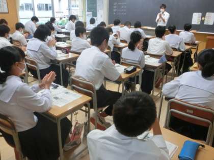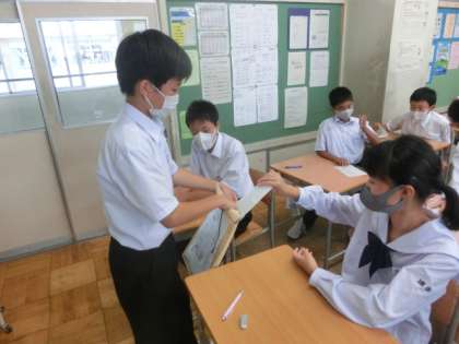 教室では、みんな真剣に聴きました。演説終了後、選挙管理委員が投票の説明をしました。投票後、委員が1人1人確認しながら回収しました。