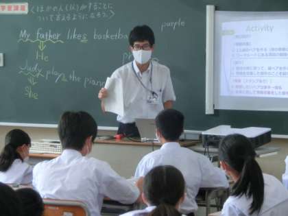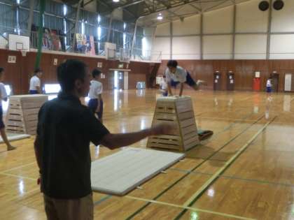 中段は、2年男子の体育です。跳び箱の技術指導を受けました。