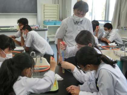 下段は、3年の理科です。酸性とアルカリ性の液体を混ぜる中和の実験を行いました。