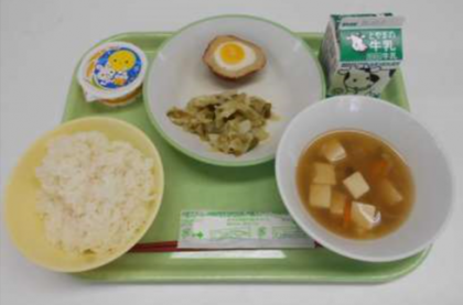 今日の給食は、ご飯・牛乳・アスパラガスのソテー・スコッチエッグ・白玉汁・お月見ゼリー・でした。