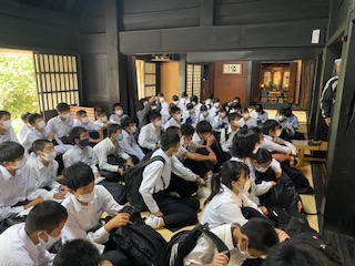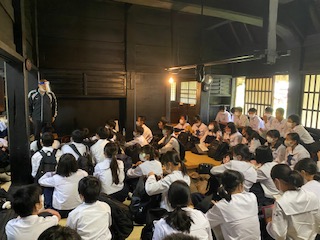 7,8,9組は、五箇山の合掌造りに到着しました。村上家で話を聞いています。