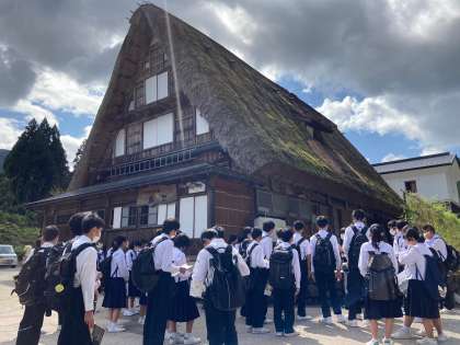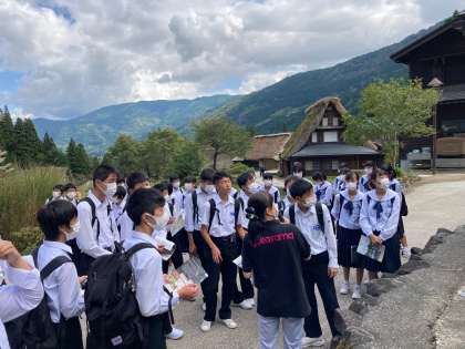 8組は、相倉合掌造り集落にてイヤホンガイドを使って話を伺っています。