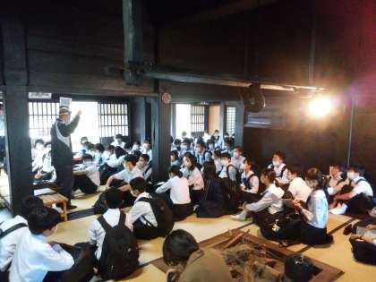4,5,6組は、五箇山合掌集落の村上家にて講話を聴いています。