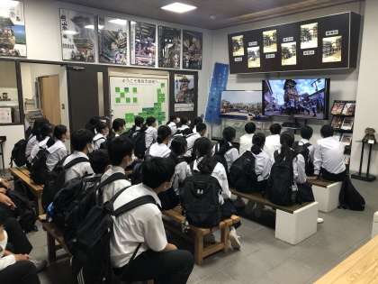 3組は、城端の散策を終え、曳山会館で映像を見ています。