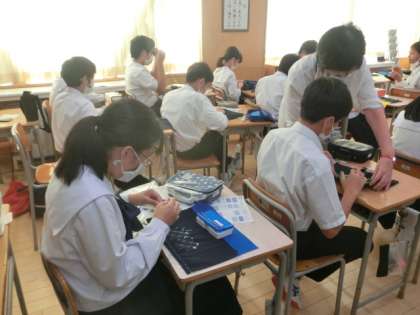 中段は、2年の家庭科です。トートバッグを製作しています。