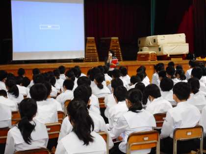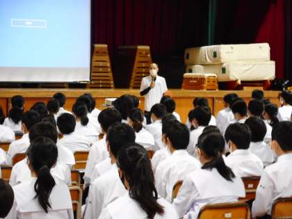 1年生は、砺波青少年自然の家から2名の職員の方を招き、5限に校外学習のオリエンテーションを行いました。
