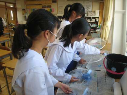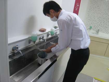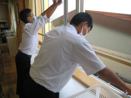 各クラスから3人ずつの有志が参加し、普段の掃除の時間にはなかなかできない換気扇のフィルターや床を念入りに掃除しました。