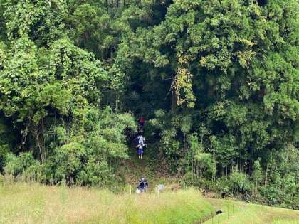 泥だらけになって、山道から出てきました。無事ポイントは見つけられたかな?