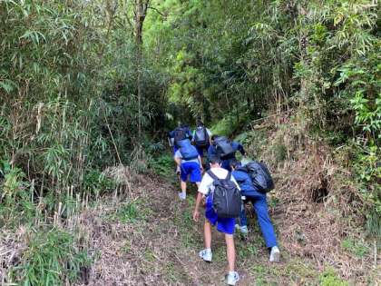 7,8,9組は、みんなで声を掛け合いながら山道を進んでいきます。