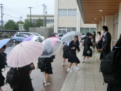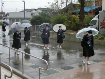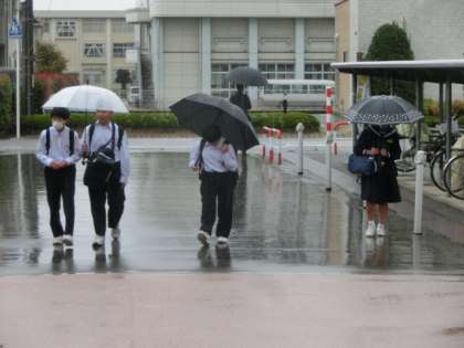 降雨のため気温が低くなったため、冬服で登校する生徒が増えました。男子はまだカッターシャツの生徒が多いですが、女子は半数以上が冬服になりました。