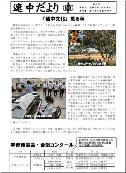 10月9日(金)、速中だより第5号を全校生徒に配布しました。