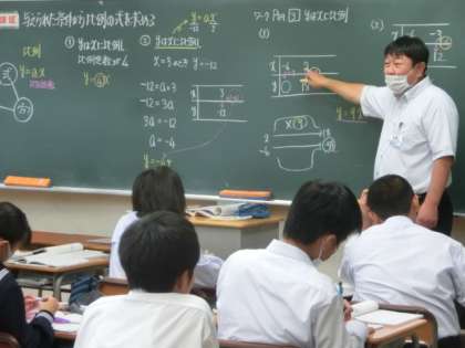 上段は、1年の数学です。与えられた条件から比例の式を求めました。