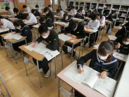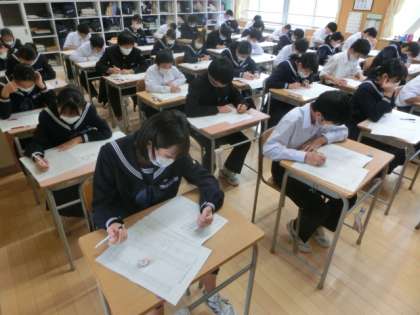 1,2限に中間考査を実施しました。1年生も無監督テスト2回目ということで、慣れてきたようです。