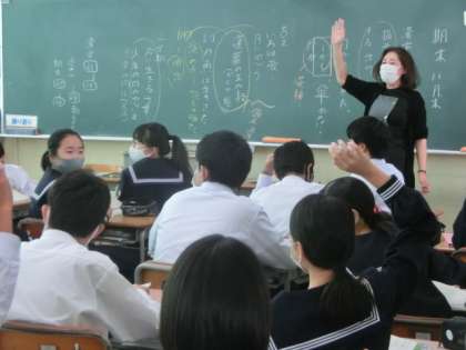 上段は、1年の国語です。解説を聞いて、中間考査を振り返りました。