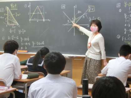中段は、2年の数学です。解説を聞いて、中間考査を振り返りました。