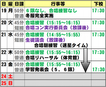 明日から、冬服完全実施です。男子は、校内では学生服を脱いでも構いませんが、登下校の際は冬服着用となります。