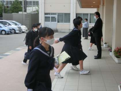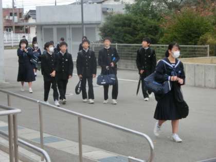 日差しは無いものの、暑くもなく寒くもなく心地よい朝でした。生徒たちは、今日も元気に登校しました。