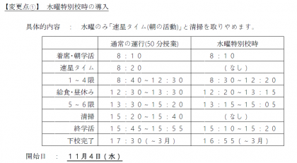 【変更点1】 水曜特別校時の導入(PDFファイルを参照)