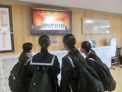 モニターには早速合唱コンクールの映像が流されており、足を止めて見入っている生徒の姿が見られました。