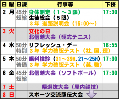 11月1日(日) 週予定