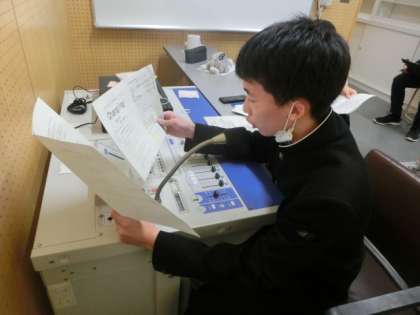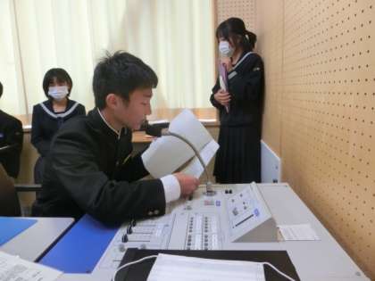 下段は、各教室で放送を真剣に聴いている生徒の様子です。
