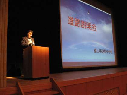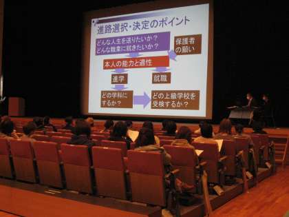 16時から、3年生保護者を対象とした進路説明会をふれあい館で行いました。