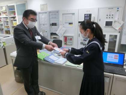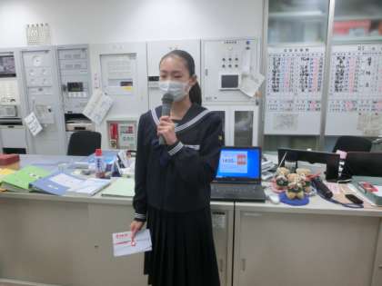 放課後、職員室にて激励会を行いました。宮田さんは「今までの練習の成果を出せるよう、精一杯演技してきます!」と抱負を述べました。