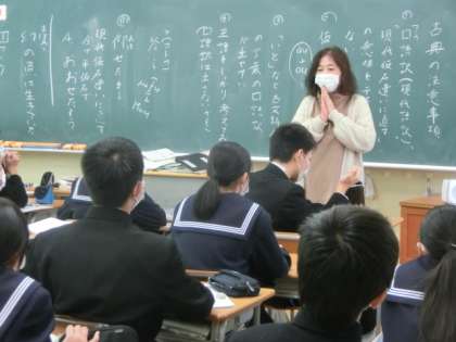 11月13日 授業風景 公開日 2020/11/13 更新日 2020/11/13 全学年 上段は、1年の国語です。古典の注意事項を確認しました。 中段は、2年の理科です。日本の天気について学習しました。 下段は、3年の家庭科です。幼児のおやつについて学習しました。