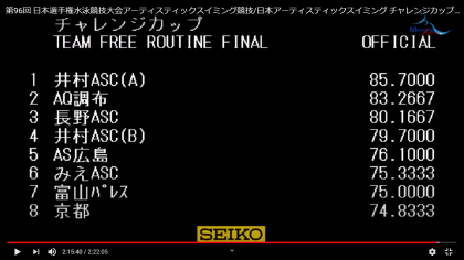 11月15日(日) アーティスティックスイミング全国大会 結果