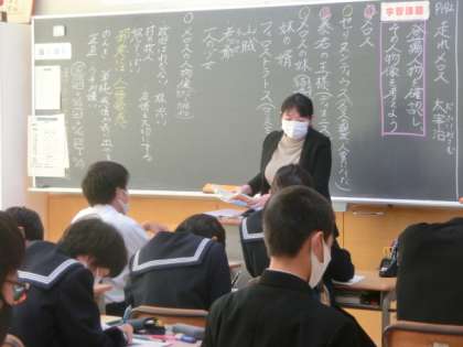 11月18日(水) 授業風景 公開日 2020/11/18 更新日 2020/11/18 全学年 上段は、1年の音楽です。『魔王』を日本語と英語とドイツ語で聞き比べました。 中段は、2年の国語です。『走れメロス』の登場人物の人物像を考えました。 下段は、3年の社会です。地方自治のしくみについて学習しました。