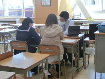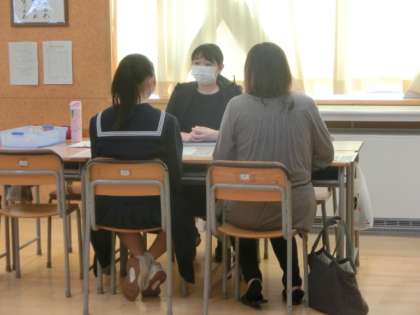 今日から、3年生の進路懇談会が始まりました。懇談内容は、主に私立推薦の受験についてです。よりよい進路選択ができるよう、しっかりと情報提供していきます。