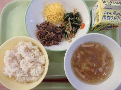 麦ごはん ビビンバ 春雨スープ