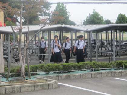 今朝の登校時は晴れになりました。今日は5限に後期生徒会役員の任命式を行います。本日の下校完了時間16:10です。。