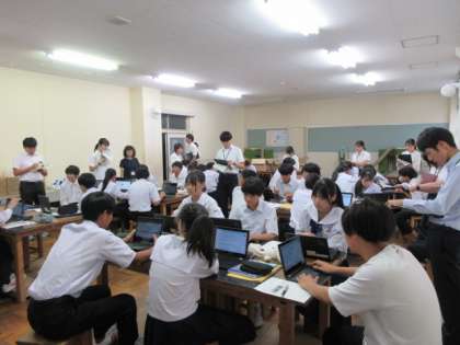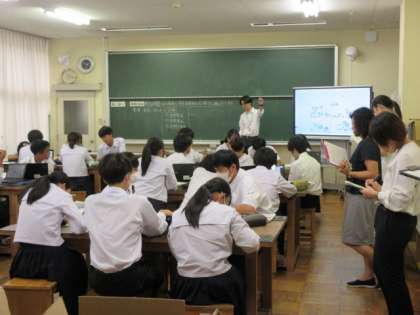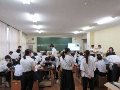 本日、本校にて富山市内の2年次の先生方の1つのグループが集まり、本校教諭の研修授業を見て研修会を行いました。