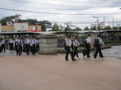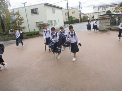 今朝の登校時は小雨になりました。今日は午後から新人大会の壮行会を行います。本日の下校完了時間は16:50です。
