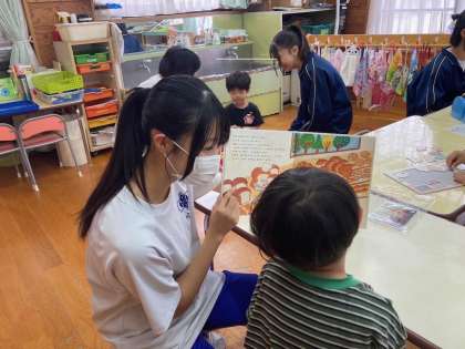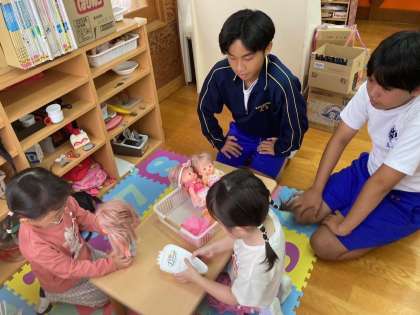 速星幼稚園への訪問は、今日が初めてだったので園児たちは、お兄ちゃん、お姉ちゃんと一緒に楽しそうに遊んでいました。