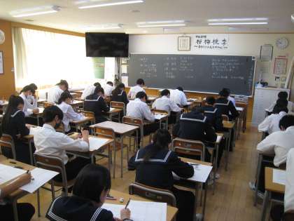3年生は確認テストに取り組んでいます。写真は37H、38H、39Hの様子です。