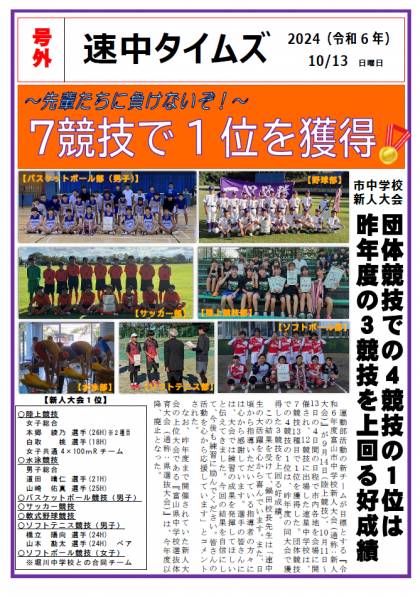 令和6年度富山市中学校新人大会と第48回富山県ジュニアオリンピック中学校陸上競技大会での活躍を「速中タイムズ『号外版』」として発行しました。